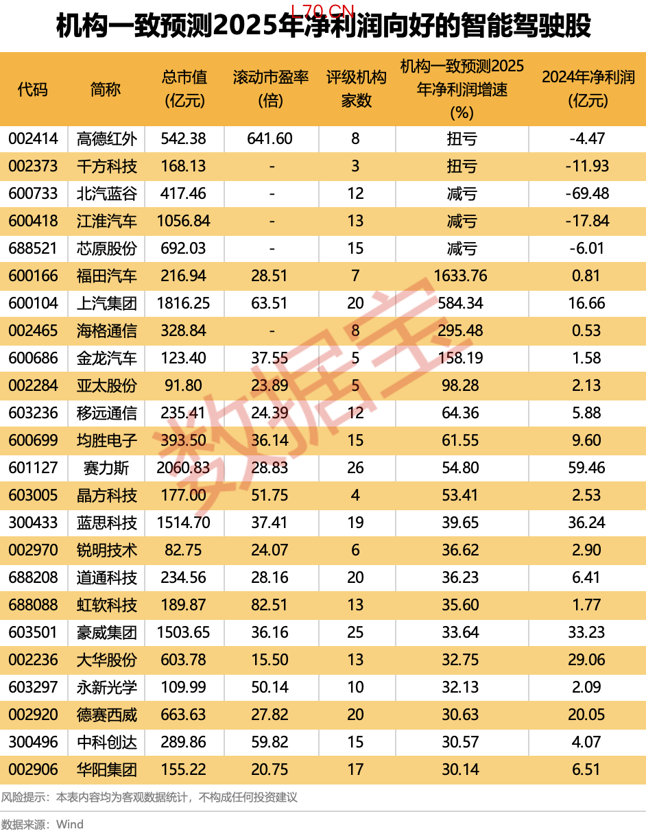 机构一致预测2025年净利润向好的智能驾驶股一览品牌配资推荐