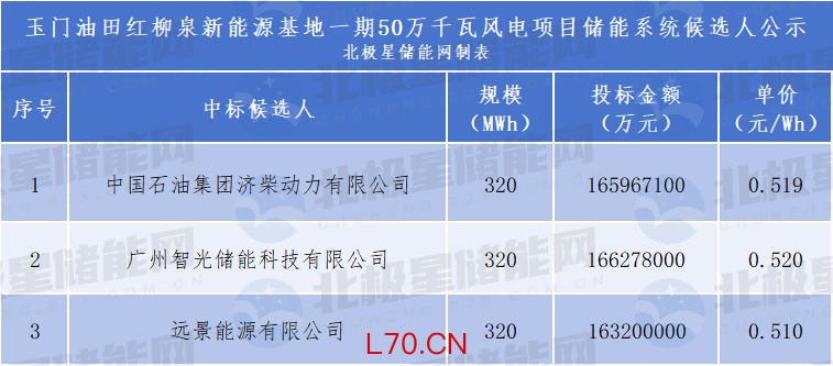 元股证券:ygzq.hk第一中标候选人:中国石油集团济柴动力有限公司,投标报价16596.71万元,折合单价0.519元/Wh;