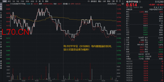 周五(4月3日)超60亿主力资金涌入电子板块,板块吸金额高居31个申万一级行业第二位,荟聚电子板块核心龙头的电子ETF华宝(515260)场内涨幅盘中逆市上探1.14%,最终收涨0.16%,值得关注的是,该ETF场内频现溢价区间,显示买盘资金更为强势,事实上,该ETF昨天亦单日吸金123万元。