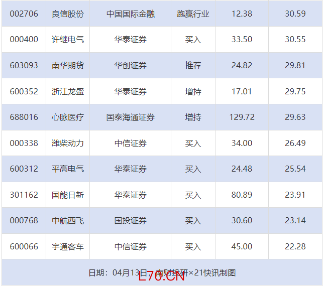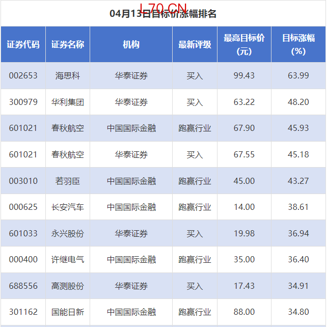 海思科目标价涨幅超63%,69股获推荐|券商评级观察