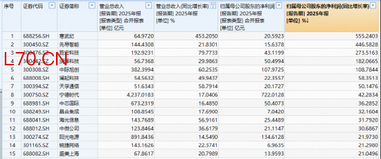 图:科创创业50指数成份股 2025年年报归母净利同比增幅TOP15