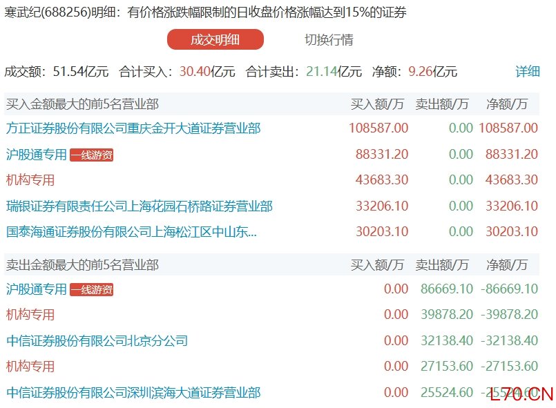 寒武纪今日涨停 涪陵广场路席位净买入10.86亿元