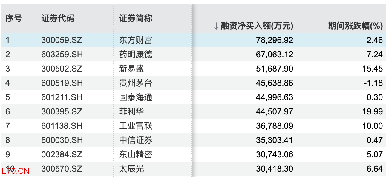 杠杆资金重仓股曝光 东方财富居首