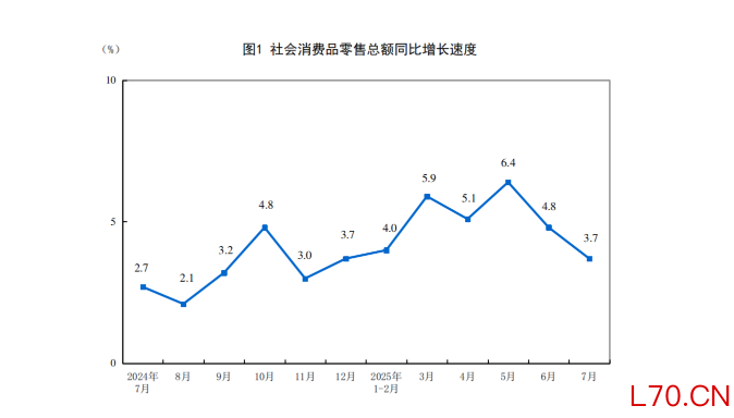 国家统计局:7月份社会消费品零售总额增长3.7%