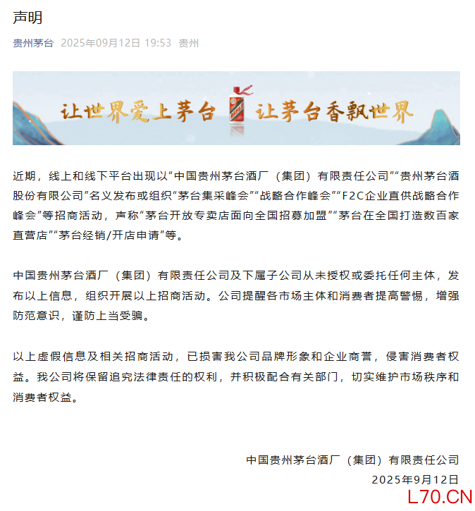 茅台集团:未授权或委托任何主体发布或组织“茅台集采峰会”等招商活动配资查询平台可信吗